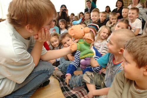 4 grudnia w praskim Przedszkolu z Oddziałami Integracyjnymi nr 185 Wydawnictwa Szkolne i Pedagogiczne zorganizowały spotkanie z Roksaną Jędrzejewską-Wróbel oraz Joanną Jung – autorkami tekstów i ilustracji do 6 książeczek terapeutycznych dla przedszkolaków, wydanych przez WSiP w „Serii z Plastelinkiem”. Autorki, które często pracują wspólnie nad książkami dla najmłodszych, mówiły o wymagającym zadaniu tworzenia dla dziecka, które bezbłędnie wyczuwa każdą nieszczerość tekstu. A jednocześnie często bardzo potrzebuje rozmowy o sprawach trudnych, do której dobrym pretekstem czy wstępem może być właśnie czytana wspólnie książka. Spotkaniu towarzyszył spektakl „To okropne rodzeństwo!” w adaptacji i reżyserii dr Małgorzaty Graczyk; przygotowany przez gimnazjalistów z warszawskiego Zespołu Ognisk Wychowawczych im. Kazimierza Lisieckiego „Dziadka” – Ogniska „Praga”. Przedstawienie na motywach jednej z książek wydanych przez WSiP, z pacynką Plastelinka, obejrzały także grupy przedszkolaków.