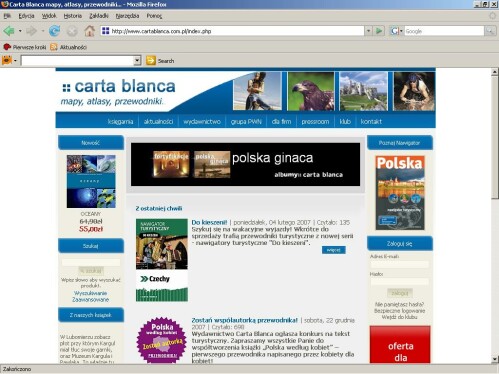W 2007 r. Oficyna wydała 30 tytułów, w tym 21 nowości. Przejęła także ofertę wydawnictwa Kompas (atlasy i mapy samochodowe Polski), który stał się marką Carta Blanca.