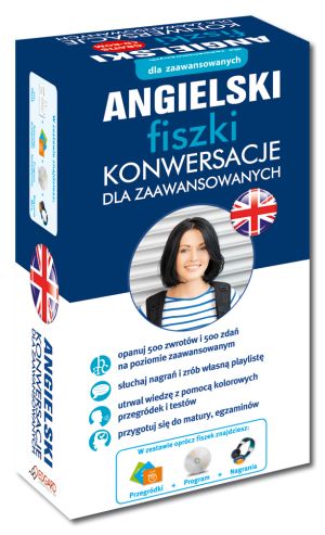 Angielski fiszki Konwersacje dla zaawansowanych wraz z przykładowymi zdaniami to wyjątkowy kurs do nauki języka, na który składają się: 500 ponumerowanych fiszek, płyta CD-ROM z nagraniami MP3 i programem oraz praktyczne pudełko z kolorowymi przegródkami.
