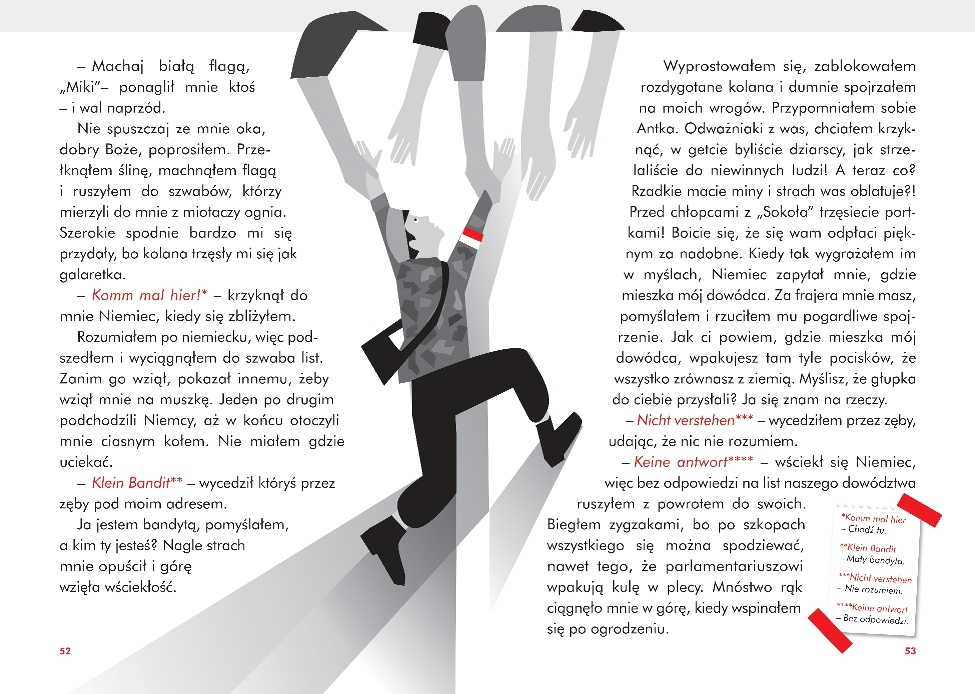Przeżyli Powstanie Warszawskie, choć nieraz byli w poważnych opałach. Halinka ratowała psy i koty. „Kazimierz” przekazywał meldunki i roznosił powstańczą prasę. „Hipek” pełnił służbę w warszawskich kanałach. Mirek uciekł z domu, by walczyć na pierwszej linii. Żydowscy bracia Zalman i Perec przyłączyli się do powstańców po upadku getta i tułaczce po ulicach Warszawy. Dziewięcioletni Jureczek był najmłodszym zaprzysiężonym żołnierzem AK i służył na Mokotowie. Basia ukrywała się w nieludzkich warunkach w warszawskich piwnicach. A łączniczka Jaga, już niemal dorosła, podnosiła wszystkich na duchu w najtrudniejszych chwilach.