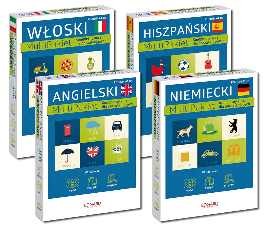 Multikursy to nowe wydania zestawów: Angielski MultiPakiet, Hiszpański MultiPakiet, Włoski MultiPakiet, Niemiecki MultiPakiet. Zawartość pierwszych i drugich wydań różni się.