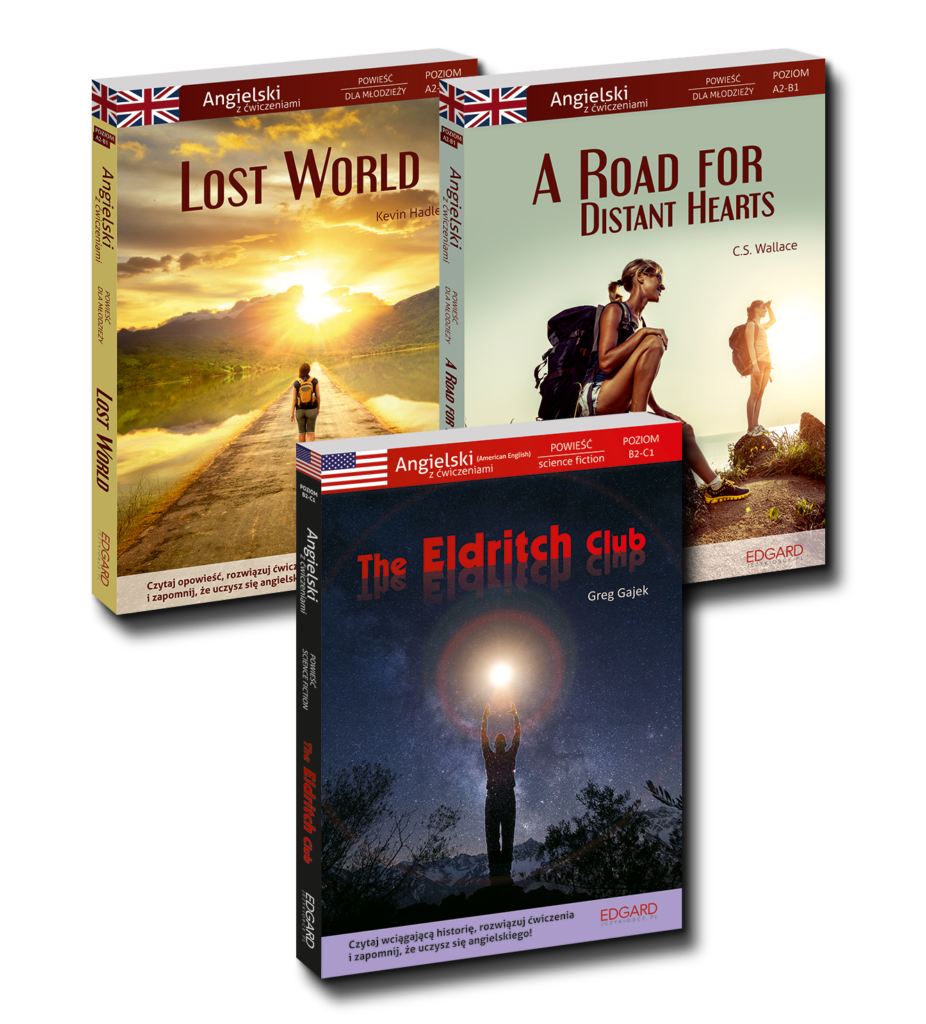 Lost World oraz A Road for Distant Hearts to wyjątkowe kursy językowe! Nauka angielskiego przebiega mimochodem, podczas czytania wciągających powieści młodzieżowych, które zostały napisane specjalnie z myślą o osobach znających podstawy język angielskiego oraz średnio zaawansowanych (poziom A2-B1) lub zaawansowanych (B2-C1). Dzięki temu nowe słowa i struktury gramatyczne poznaje się w kontekście, w sposób sprzyjający zapamiętywaniu.