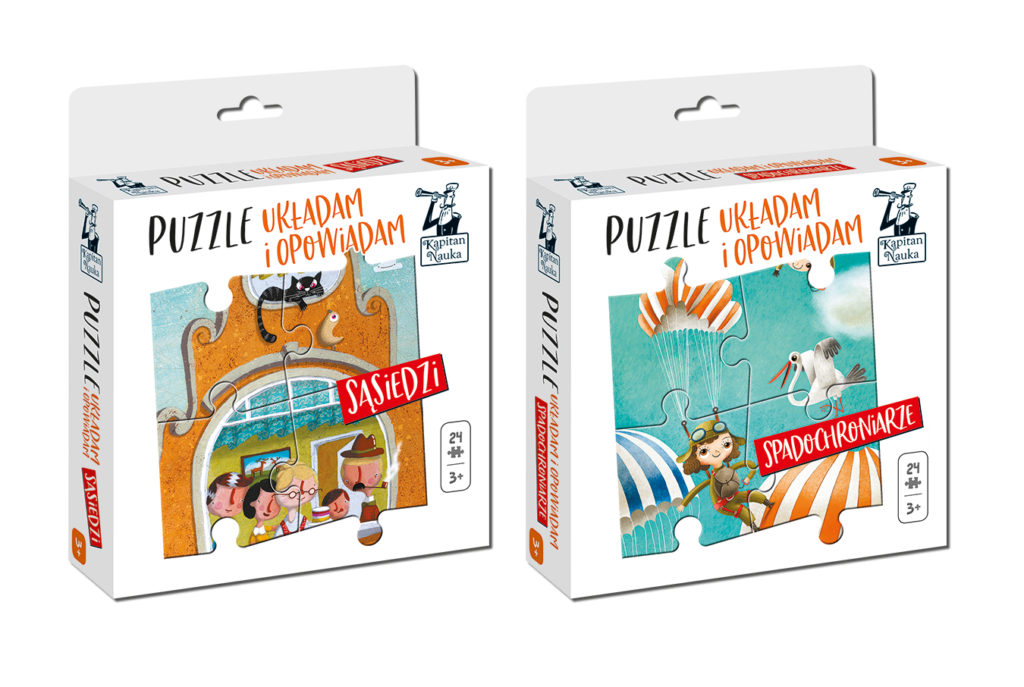 Puzzle Układam i opowiadam Sąsiedzi oraz Układam i opowiadam Spadochroniarze to wyjątkowy pomysł na wspólną zabawę z przedszkolakami.