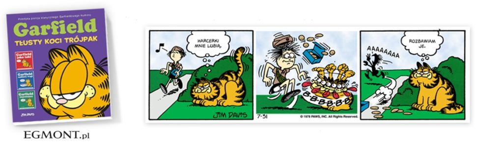 Garfieldowy cykl „TŁUSTYCH KOCICH TRÓJPAKÓW”, który trafia właśnie do sprzedaży stanowi kolekcję komiksowych pasków zebranych w nowym, kolorowym wydaniu. Garfield zmieniał się trochę na przestrzeni lat, ale jedno pozostało niezmienne: jego gigantyczny apetyt na jedzenie i poczucie humoru. Czytelników czeka dużo szaleńczej radości z nienasyconym kotem, bo zabawy nigdy dość!