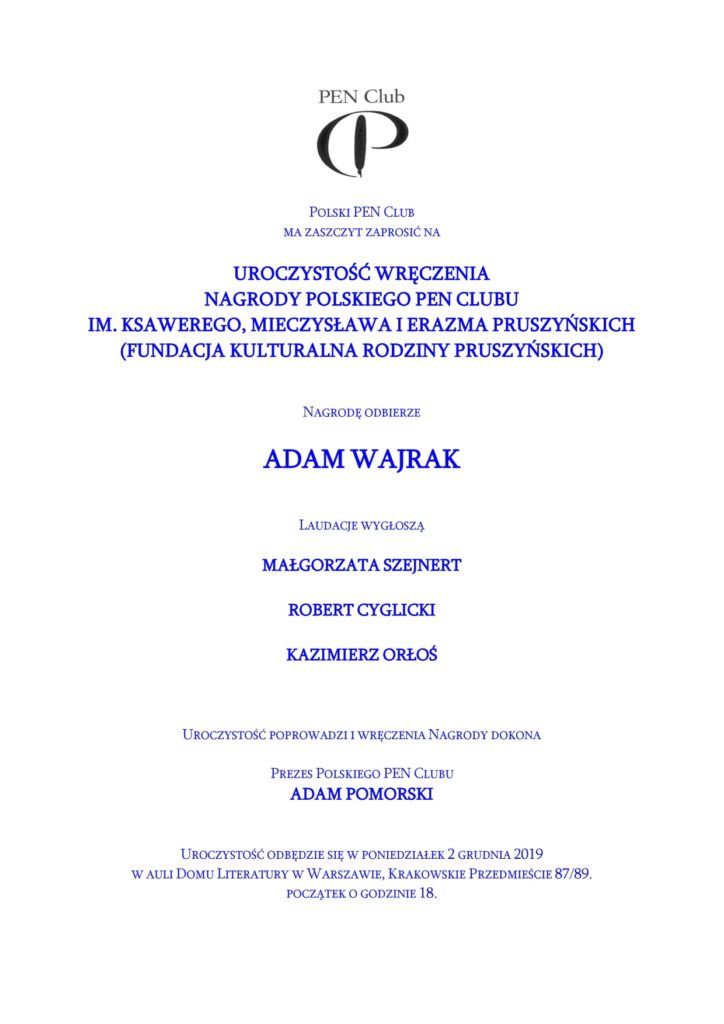 Adam Wajrak odebrał Nagrodę PEN-Clubu im. Pruszyńskich
