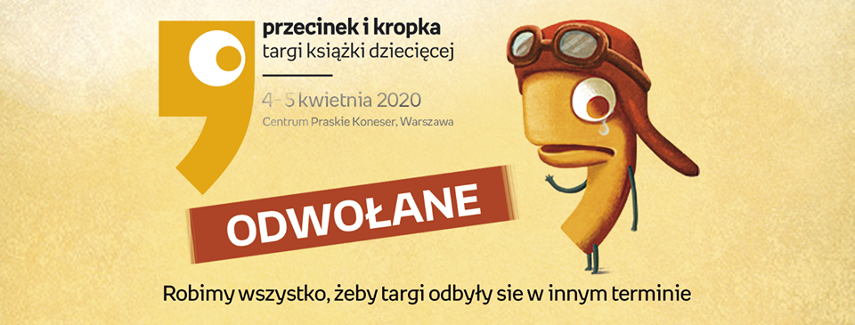 Z przykrością informujemy, że musieliśmy podjąć niełatwą dla nas decyzję o odwołaniu zbliżających się Targów Książki Dziecięcej Przecinek i Kropka. W obliczu zagrożenia rozprzestrzeniającym się koronawirusem, musimy dbać o to, co najważniejsze, czyli zdrowie naszych i Waszych dzieci. Dziękujemy 9-ciu tysiącom fanów, którzy już dodali się do wydarzenia. Wszystkich sympatyków Przecinka i Kropki, najmłodszych czytelników oraz ich rodziców informujemy, że robimy wszystko, aby targi odbyły się w innym, bezpiecznym terminie.