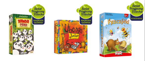 W kategorii GRY dla dzieci 0-7 lat wydawnictwo Egmont zdobyło dwie nagrody za gry „Ubongo Junior” oraz „Banda Pand i kawałki bambusa”. „Ubongo Junior” to wersja bestsellerowej gry „Ubongo” przeznaczona dla najmłodszych. Idealnie sprawdzi się na początek planszówkowej przygody. “Banda Pand i kawałki bambusa” to gra karciana dla całej rodziny. Ćwiczy spostrzegawczość i szybkość reakcji – zarówno dzieci jak i dorośli mają równe szanse na wygraną. Gra została również doceniona tytułem GRA ROKU 2024 w kategorii Dziecięcej plebiscytu Planszowa Gra Roku.