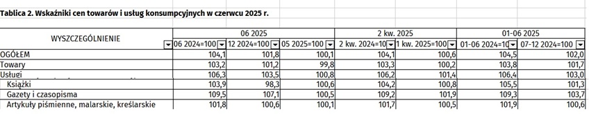 GUS: wskaźniki cen towarów i usług konsumpcyjnych w czerwcu 2025 r.
