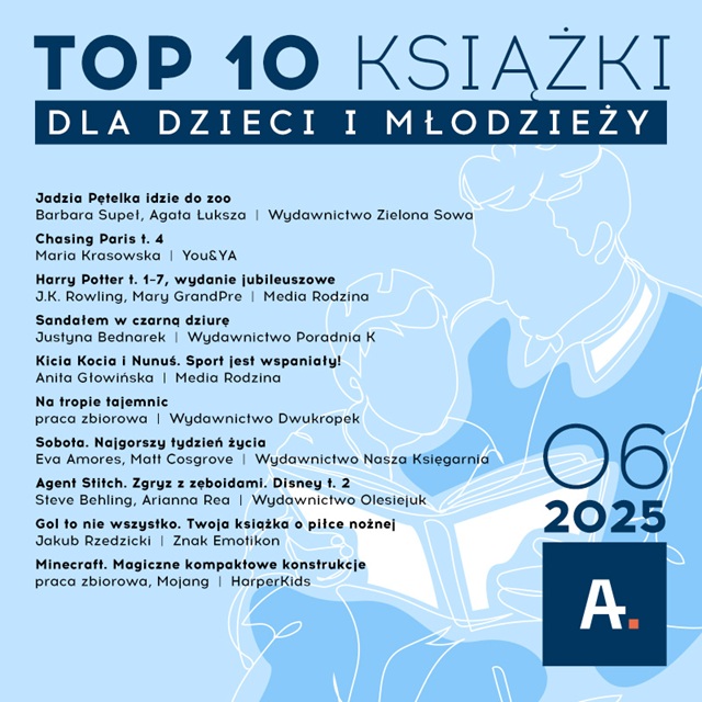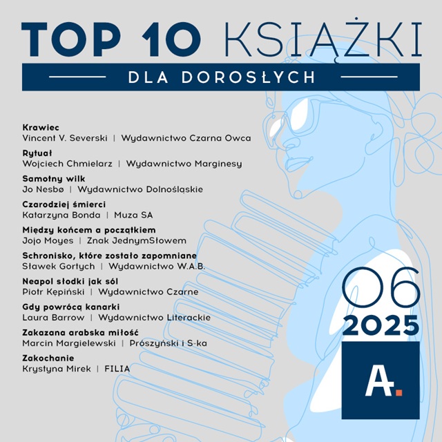 Ateneum, największy polski dystrybutor książek, gier, zabawek i artykułów papierniczych, przygotowało zestawienie TOP 10 najlepiej sprzedających się tytułów pośród premier wydawniczych czerwca 2025 roku w podziale na dwie kategorie: dla dorosłych oraz dla dzieci i młodzieży.