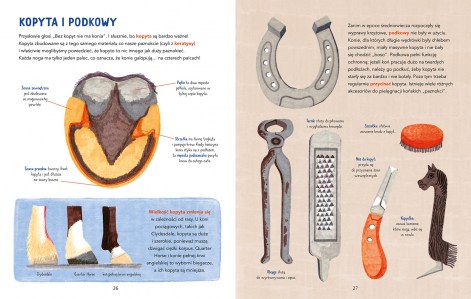 Oto fascynująca książka dla miłośników koni. Każdy jej rozdział porusza jeden z rozmaitych tematów związanych z tymi niezwykłymi zwierzętami. Towarzyszą im przepiękne, malarskie ilustracje, które nadają książce niepowtarzalny klimat. Polecamy tę książkę wszystkim dzieciom, które kochają konie – młodym początkującym jeźdźcom, małym fanom koni, a także dzieciom, które po prostu lubią wszystkie zwierzęta i chciałyby dowiedzieć się więcej o tym niezwykłym gatunku.