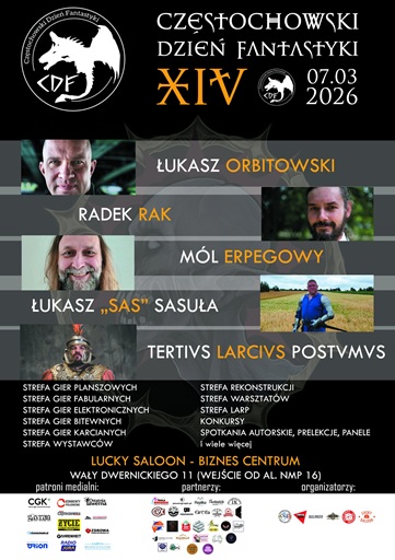 W najbliższą sobotę, 07 marca 2026, Częstochowski Klub Fantastyki zaprasza na XIV edycję Częstochowskiego Dnia Fantastyki. Wydarzenie będzie mieć miejsce tradycyjnie w Lucky Saloon i Częstochowskim Biznes Centrum (Wały Dwernickiego 11).